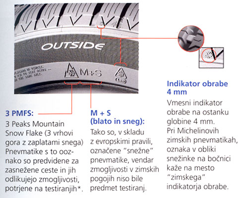 Od 1. novembra 2012 morajo biti na mestu prodaje pnevmatike opremeljene z nalepkami, ki označujejo njihov razred izkoristka goriva (pet razredov:A-G) oprijem na mokri podlagi (pet razredov: A-G)in zunanji kotalni hrup (3. razredi). Obveznost glede nalepk ne velja za pnevmatike, ki so bile proizvedene pred 1. julijem 2012. Informacija, ki jo podaja nalepka, je podobna informacijam, ki so potrošnikom že znane pri obveznih energijskih nalepk za gospodinjske aparate.